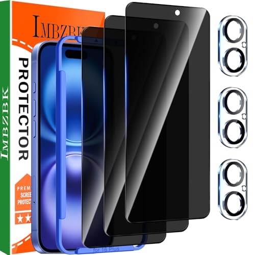 IMBZBK 3 Pièces Verre Trempé pour iPhone 16 Plus Anti Espion Vitre Protection Ecran Protege Accessoire avec 3 Pièces Protection Camera Objectif Coque la Compatibilité