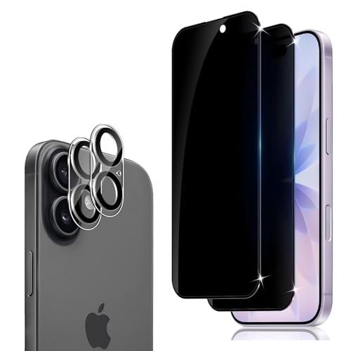 Fylnatc 3×Anti-Espion Verre Trempé pour iPhone 16 + 3×Protection Camera Objectif Arriere appareil Photo avec Outil d'Installation Facile, Privacy Film de Protection écran Anti-Spy, Dureté 9H Glas