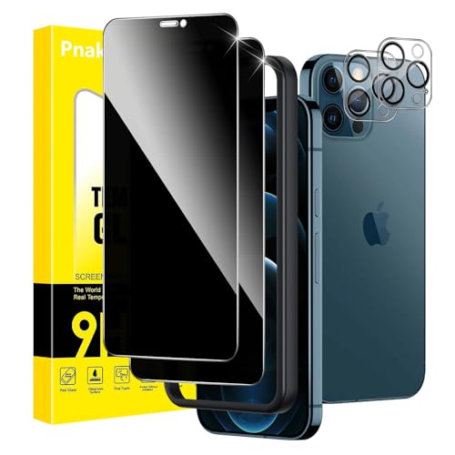 Pnakqil Verre trempé pour iPhone 12 Pro Anti Espion avec Protecteur Camera,Privacy Protection Ecran pour iPhone 12 Pro Dureté 9H avec Outil d'Installation Facile Anti Spy Vitre Film,2+2 Pièces