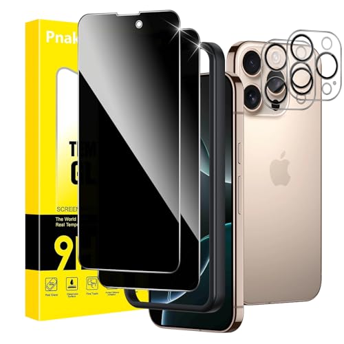 Pnakqil Verre trempé pour iPhone 16 Pro Max Anti Espion avec Protecteur Camera,Privacy Protection Ecran pour iPhone 16 Pro Max Dureté 9H avec Outil d'Installation Facile Anti Spy Vitre Film,2+2 Pièces