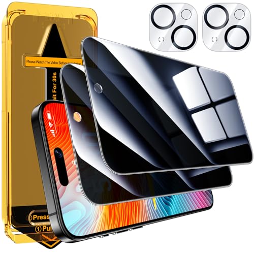 Pnakqil Verre trempé pour iPhone 15 Pro Anti Espion avec Protecteur Camera,Privacy Protection Ecran pour iPhone 15 Pro Dureté 9H avec Outil d'Installation Facile Anti Spy Vitre Film,2+2 Pièces