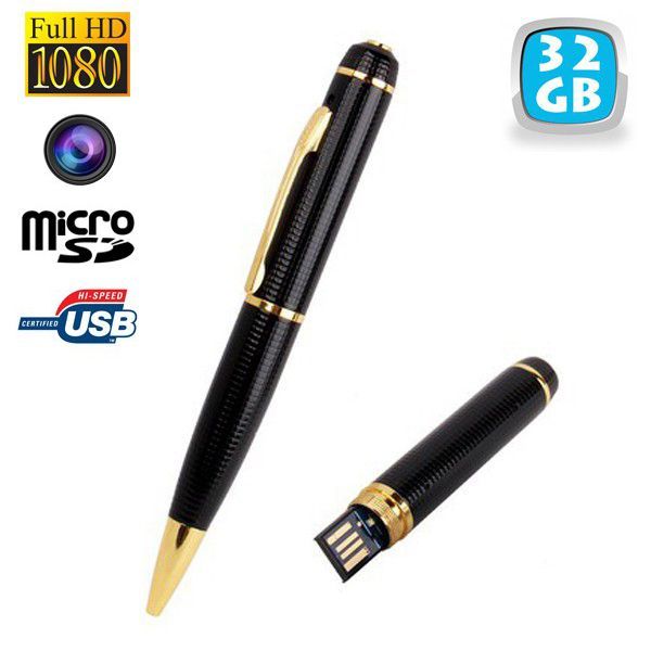 stylo caméra espion 1080P avec micro sd 32 go gris noir