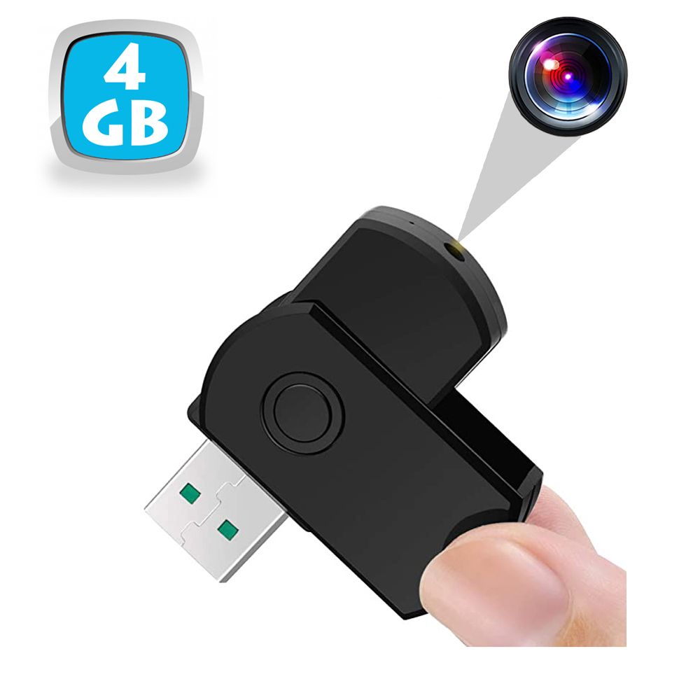 Clé USB Caméra Espion Mini Caméra Appareil Photo Vidéo HD Micro SD 4 Go Noir YONIS