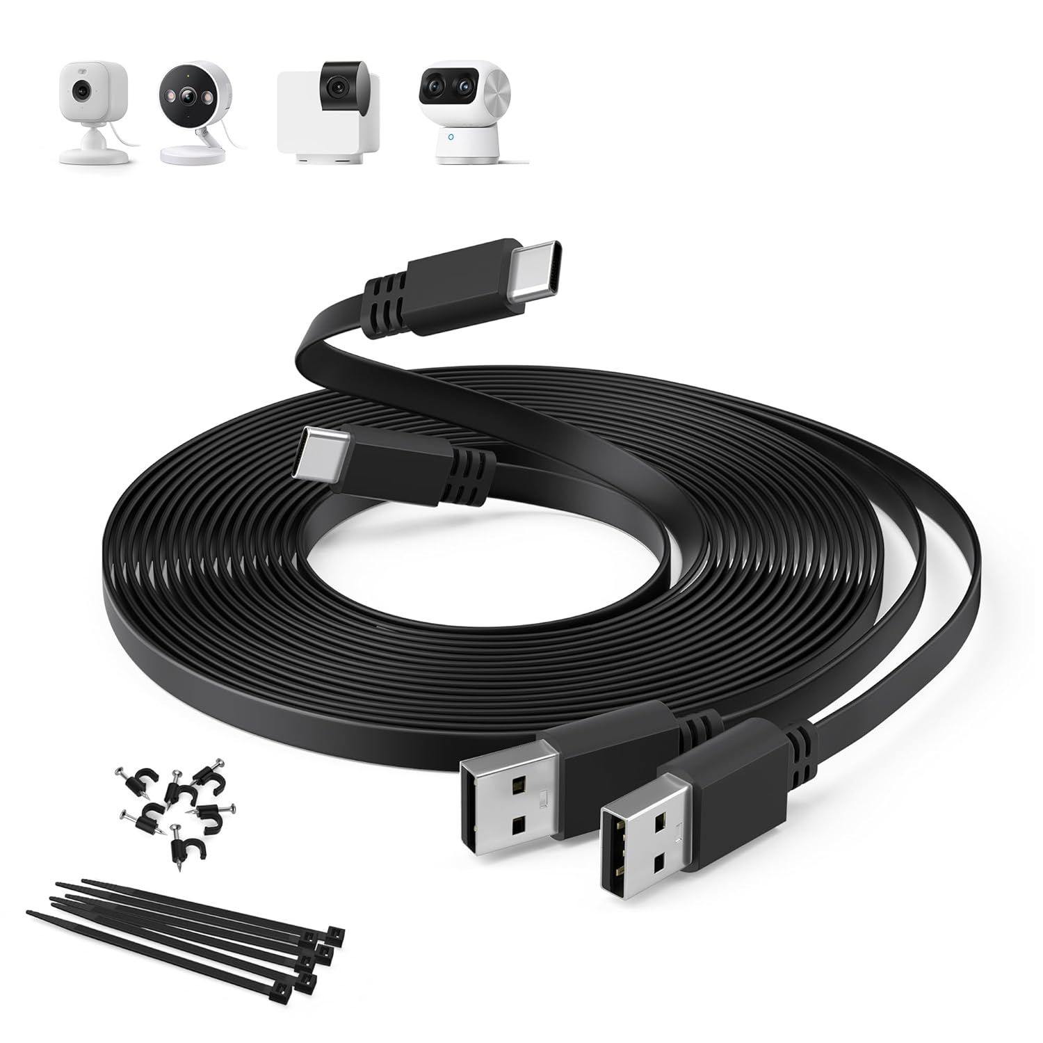 Câble d'extension d'alimentation extra long compatible avec caméra de sécurité Mi Camera 2K, caméra Ring Pan-Tilt, pour vidéosurveillance, YESKMO, caméra Eufy, câble de charge USB vers USB C pour