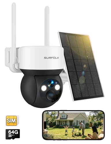 Surfola Caméra de sécurité sans WiFi, caméra de vidéosurveillance 4G avec Carte SIM, caméra d'extérieur sans Fil, Alimentation Solaire, Vision Nocturne, projecteur, HD 2,5 K, Enregistrement Local