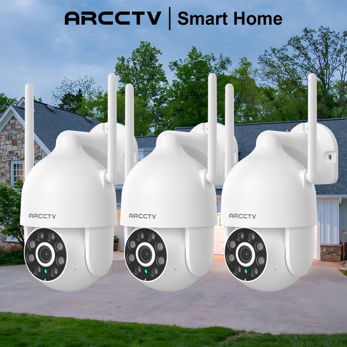 Caméra de Surveillance extérieur Filaire 3MP HD WiFi Audio Bidirectionnel Détection du Mouvement 355°Suivi automatique ARCCTV-3PCS