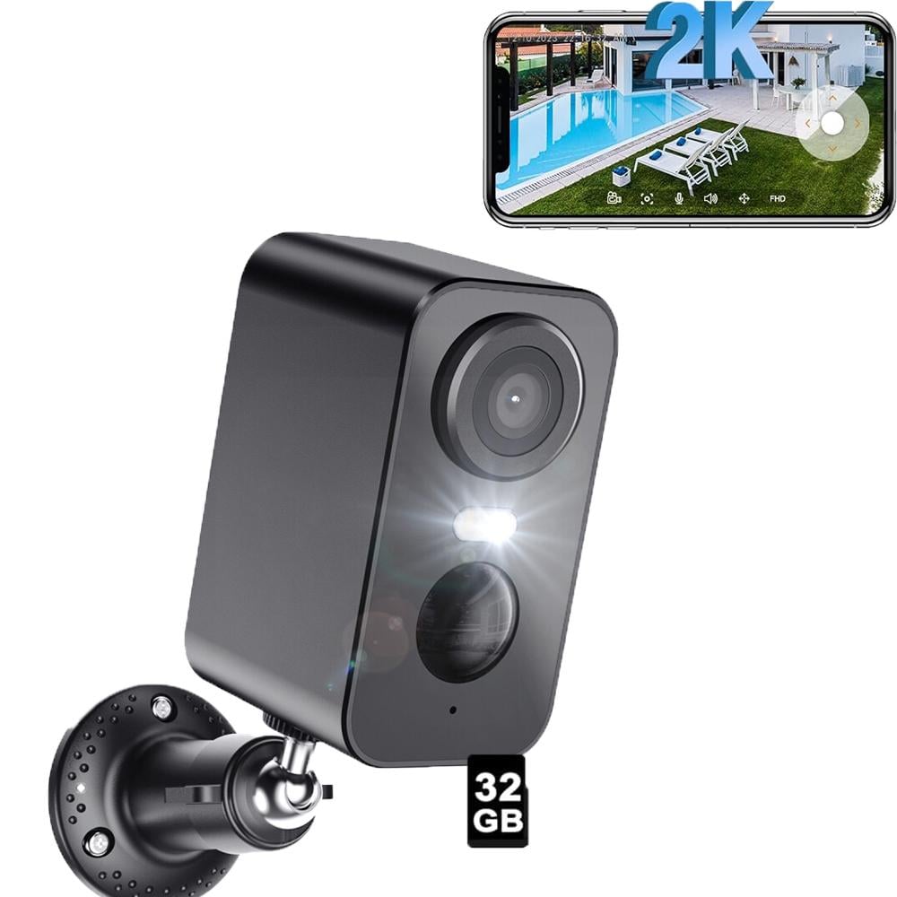 ieGeek Caméra de surveillance 2K, batterie, Wi-Fi sans fil, intérieur/extérieur avec vision nocturne couleur