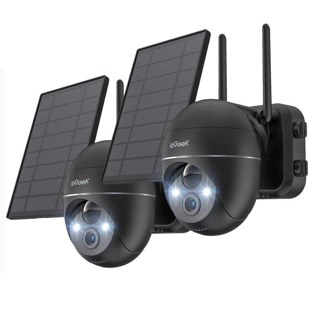 2pcs ieGeek 360° 2K Camera Surveillance WiFi Extérieure sans Fil Camera Exterieur Solaire Vision Nocturne Couleur PIR Détection