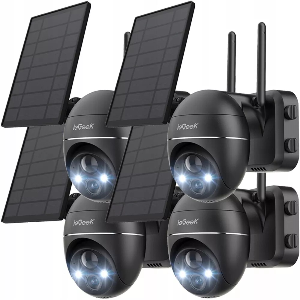 ieGeek 3MP Caméra de surveillance Extérieur Batterie Sans fil PTZ WLAN Caméra IP avec panneau solaire, Vision nocturne couleur, Audio 2 voies, 4 pcs.
