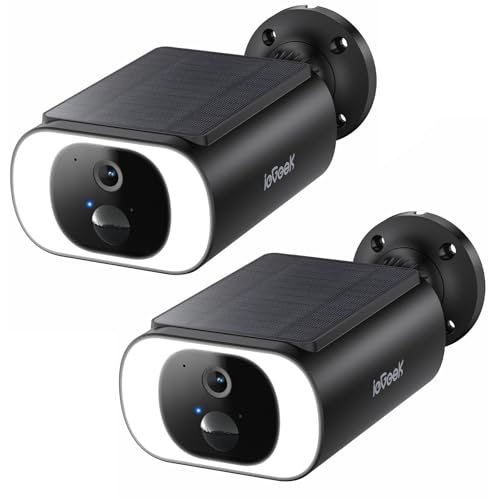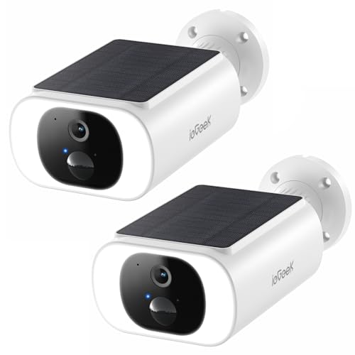ieGeek 2 Pièces 2K Camera Surveillance WiFi sans Fil - IP66 Camera Exterieur Solaire, Panneau Solaire Integree, Vision Nocturne Couleur, PIR Détection S1