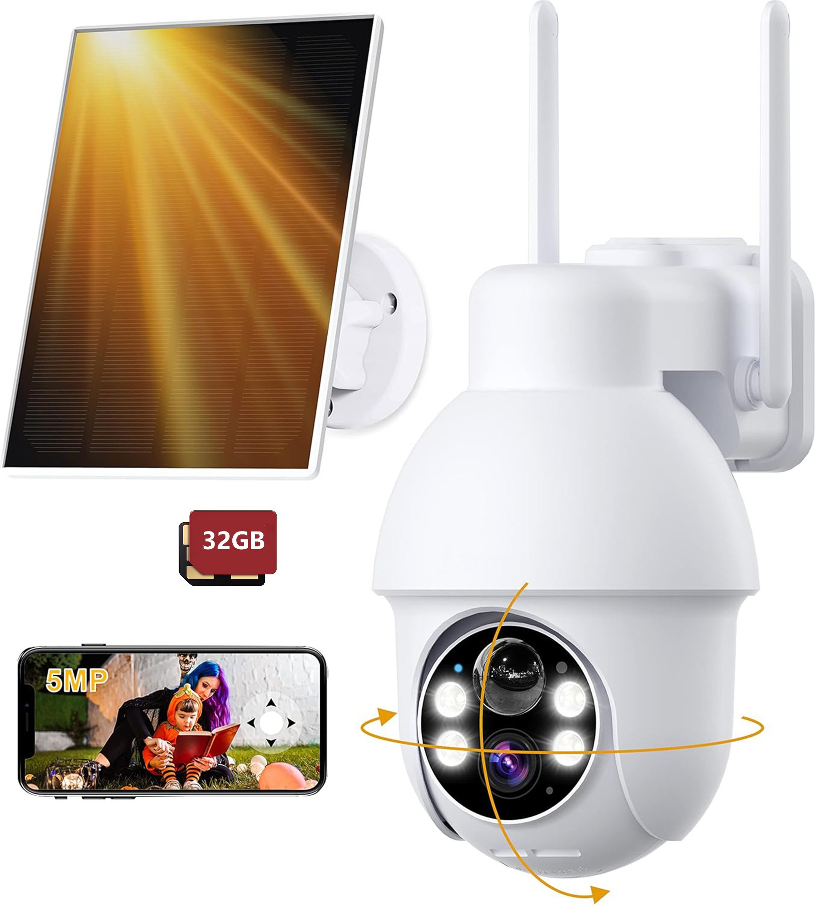 ieGeek Caméra de surveillance solaire sans fil 5MP, Caméra IP avec PTZ, Caméra WLAN d'extérieur avec vision nocturne couleur, PlR, IA intelligente et alarme lumineuse sonore, 32GB