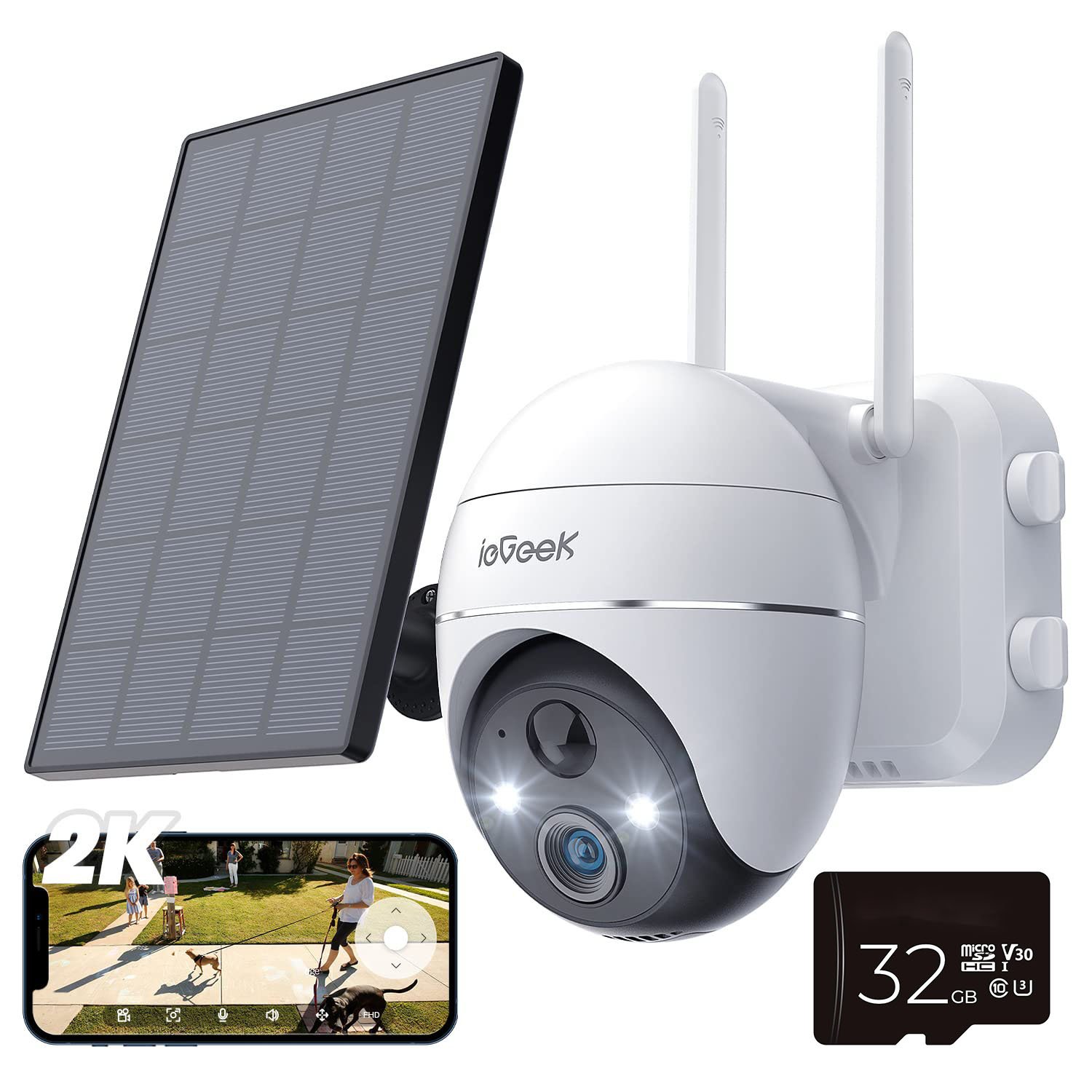 ieGeek 2K Solar caméra de surveillance extérieur batterie, PIR, audio 2 voies, Alexa, Wlan