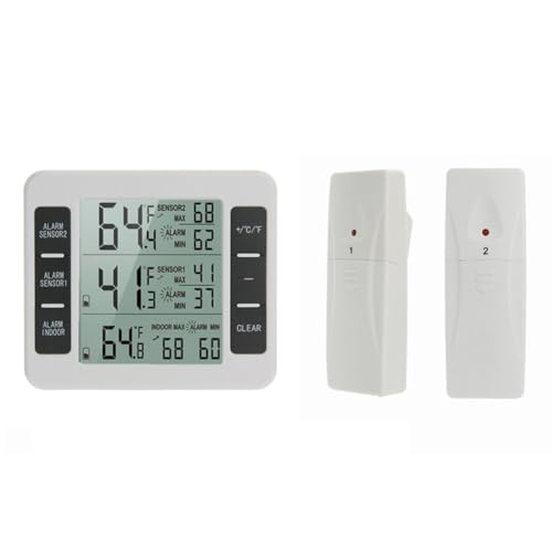 Auratrove Thermomètre numérique sans fil, moniteur de température pour réfrigérateur intérieur et extérieur avec 1 à 2 capteurs à distance, écran LCD, enregistrement max/min pour la maison et la