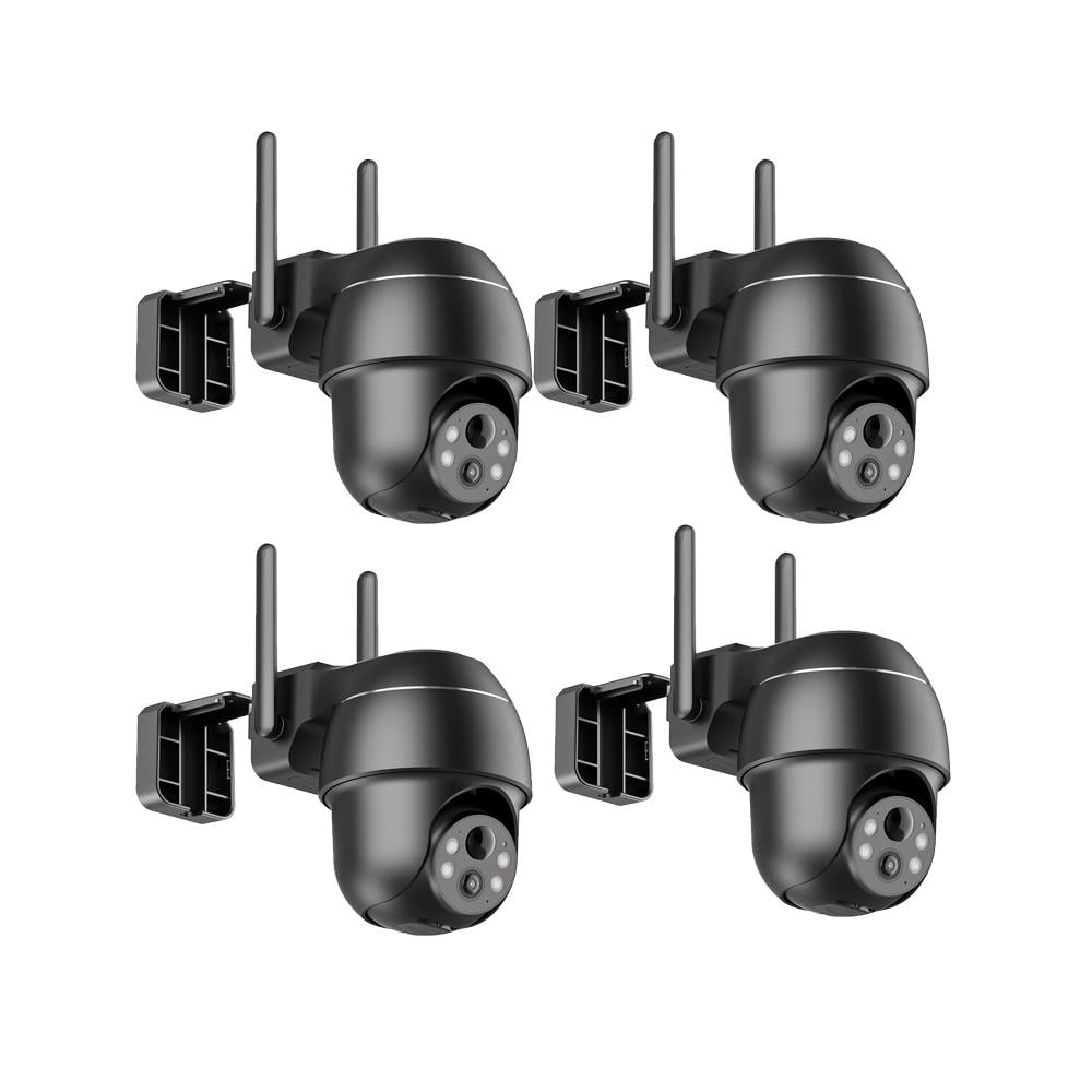 2K+ 5MP Caméra de surveillance PT Extérieur Batterie, Pan & Tilt & Vision nocturne couleur, 2,4/5GHz WiFi, détection de personnes/véhicules 4PCS