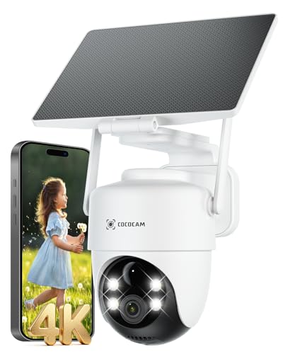 COCOCAM 4K 8MP Camera Surveillance WiFi Exterieure sans Fil sur Batterie 10000mAh, Panneau Solaire Réglable 5W, Détection IA, Détection Humaine PIR, 355 °P 90 °T, Wi-FI 2,4 GHz, IP66, Wi-FI 6