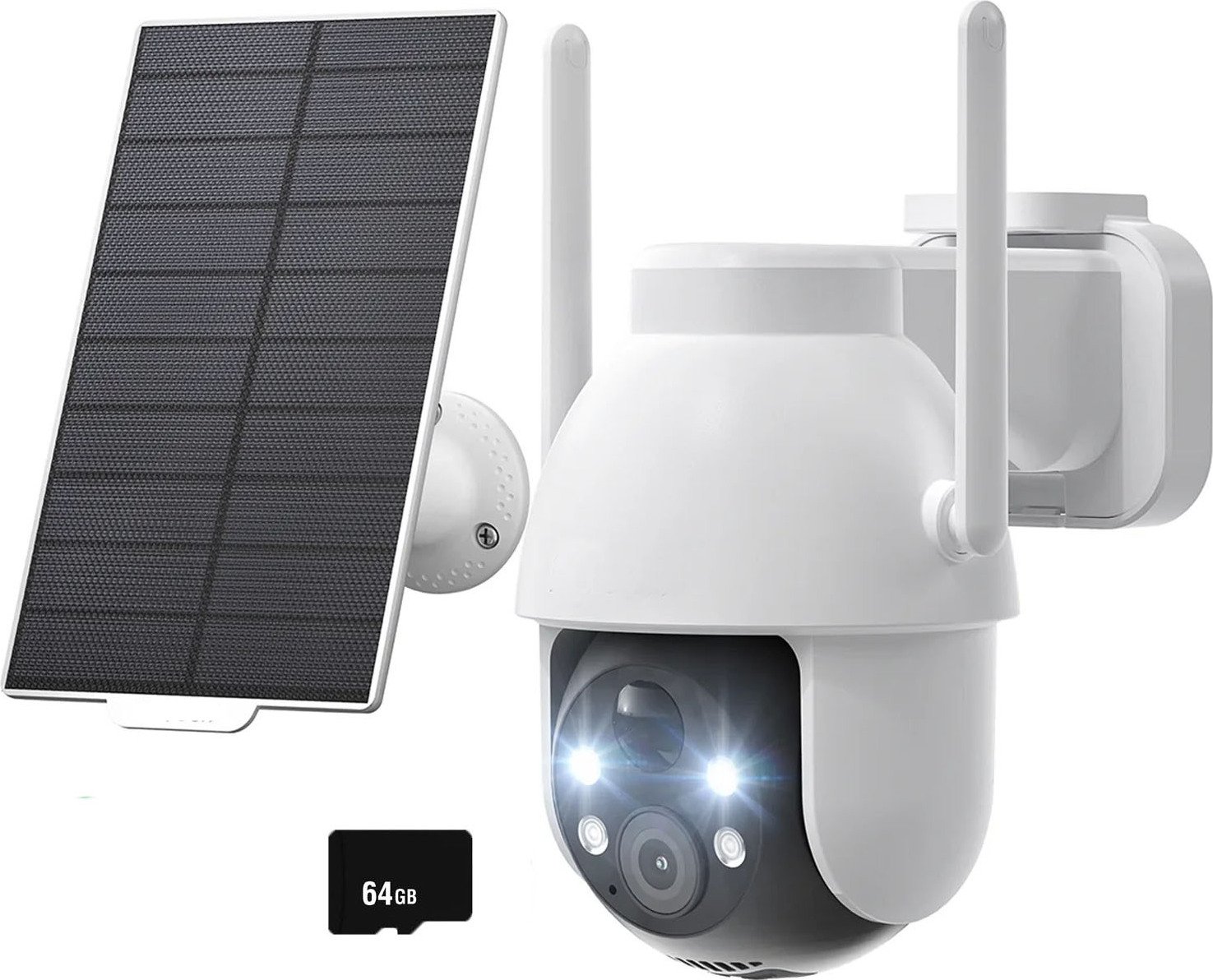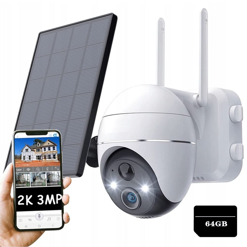 Caméra de surveillance extérieure batterie solaire 2K PTZ caméra sans fil de surveillance extérieure, PIR détecteur de mouvement, 64GB