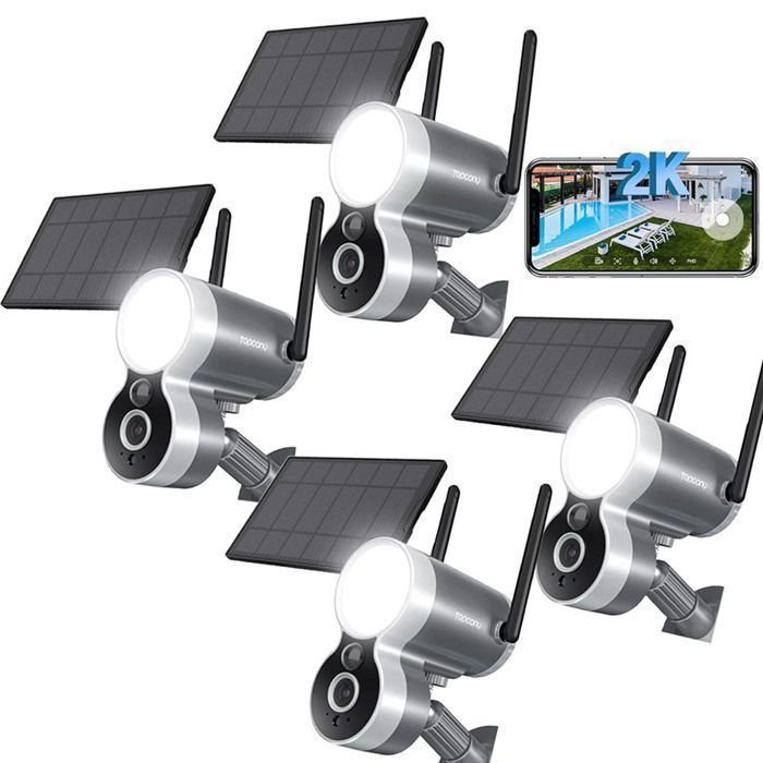 ChenQuanSarl-2K Caméra Surveillance Wifi Extérieure Sans Fil Solaire, Camera Ip Batterie Extérieure, 24/7, Pan/Tilt, Ai Détection De Mouvement/Son, Étanche Ip65, Vision Nocturne, Audio Bidirectionnel