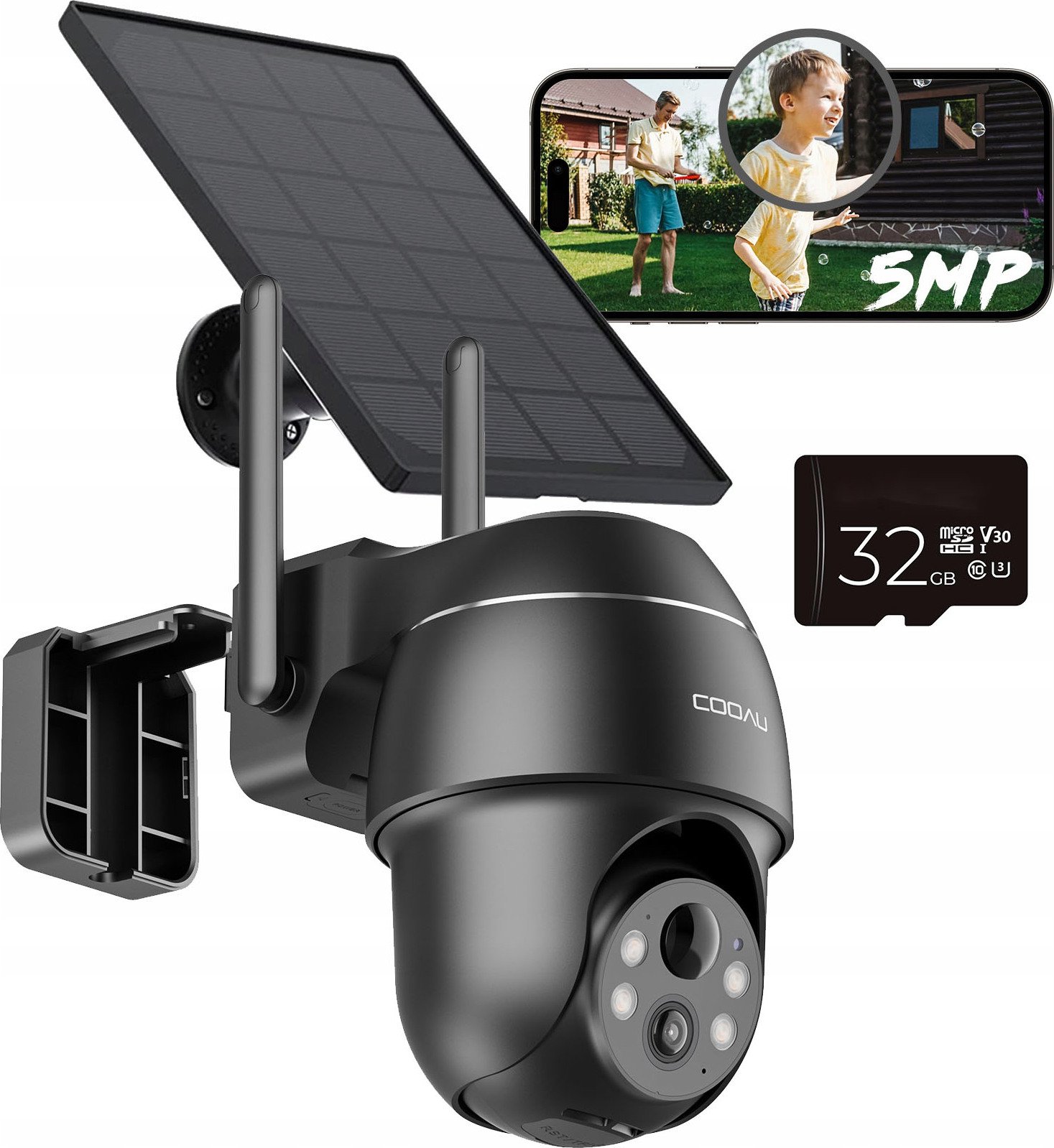 COOAU 5MP solaire caméra de surveillance extérieure batterie avec PTZ, WLAN IP caméra extérieure sans fil avec capteur PIR, vision nocturne couleur, Alexa, audio 2 voies, 32 SD