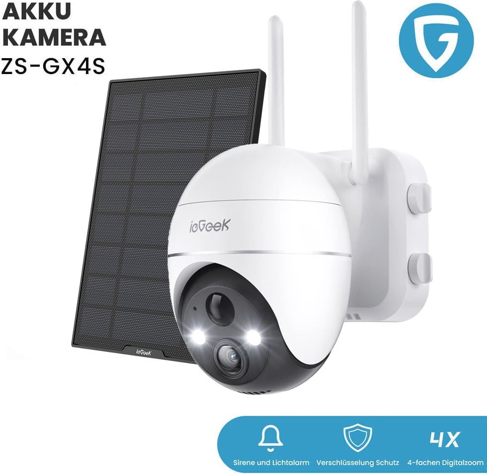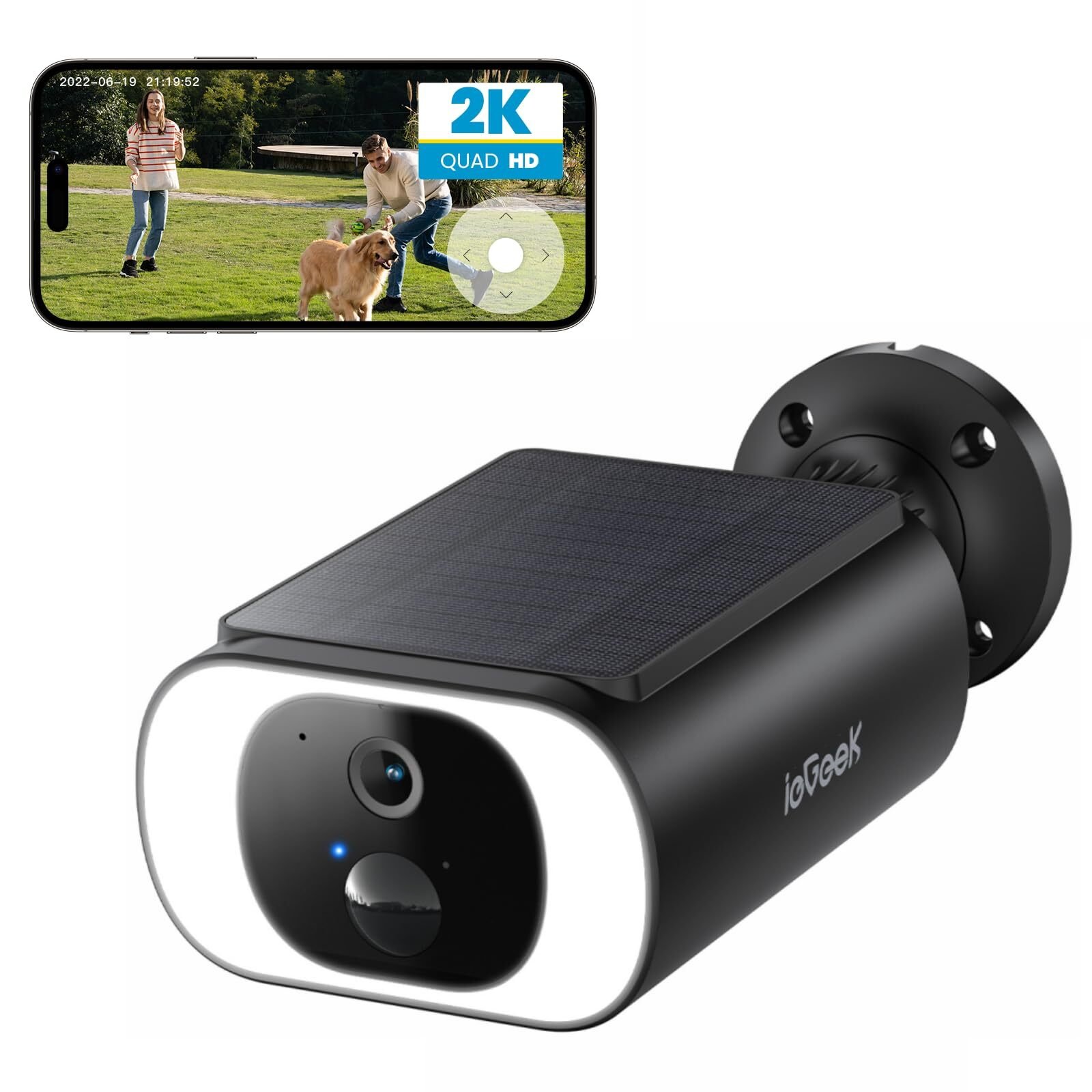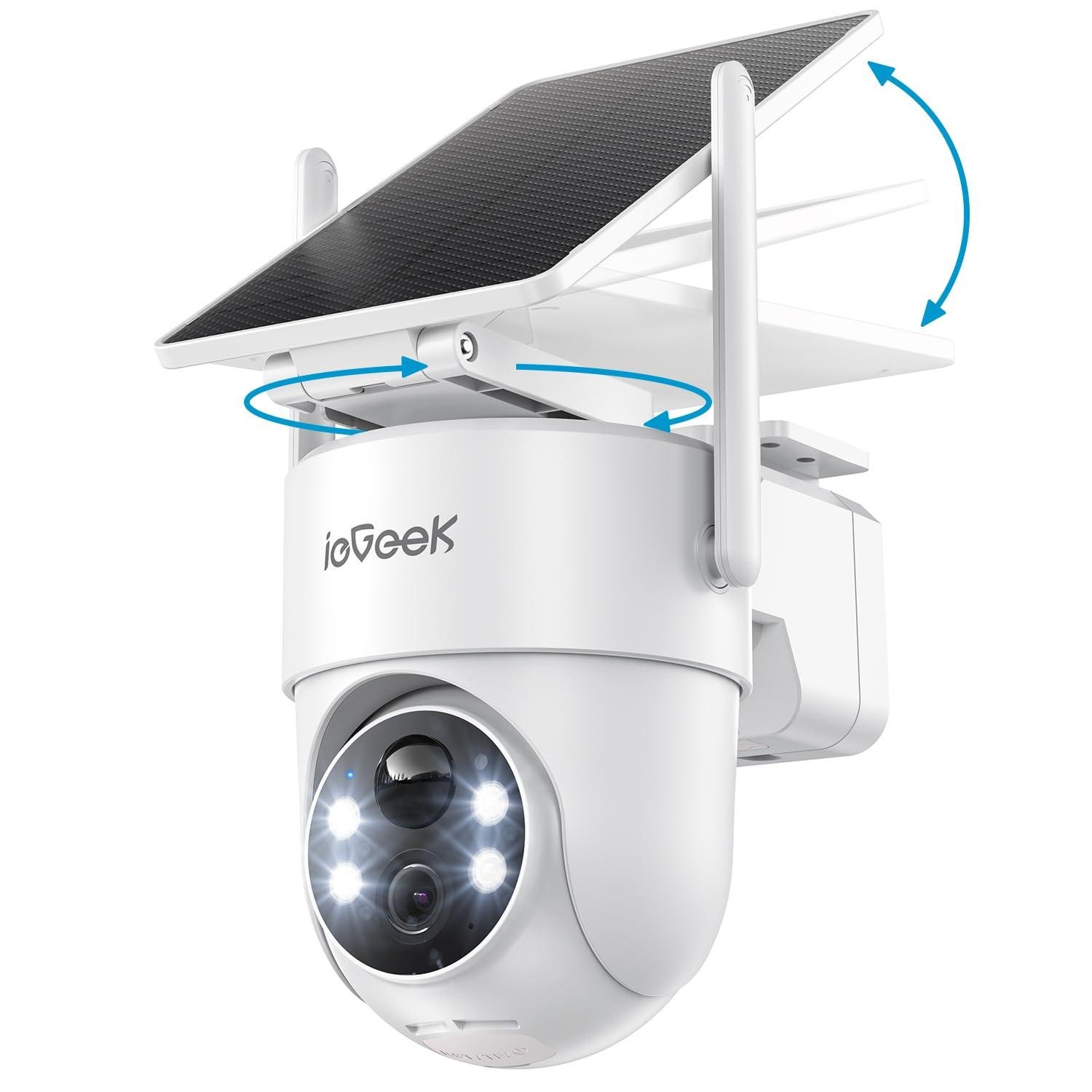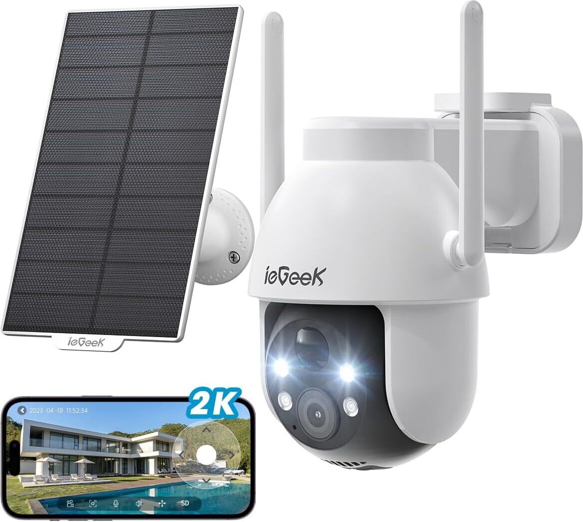 ieGeek 2K Solar caméra de surveillance extérieure batterie, caméra extérieure avec surveillance à 360