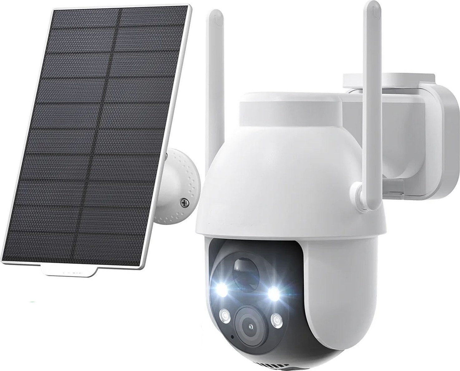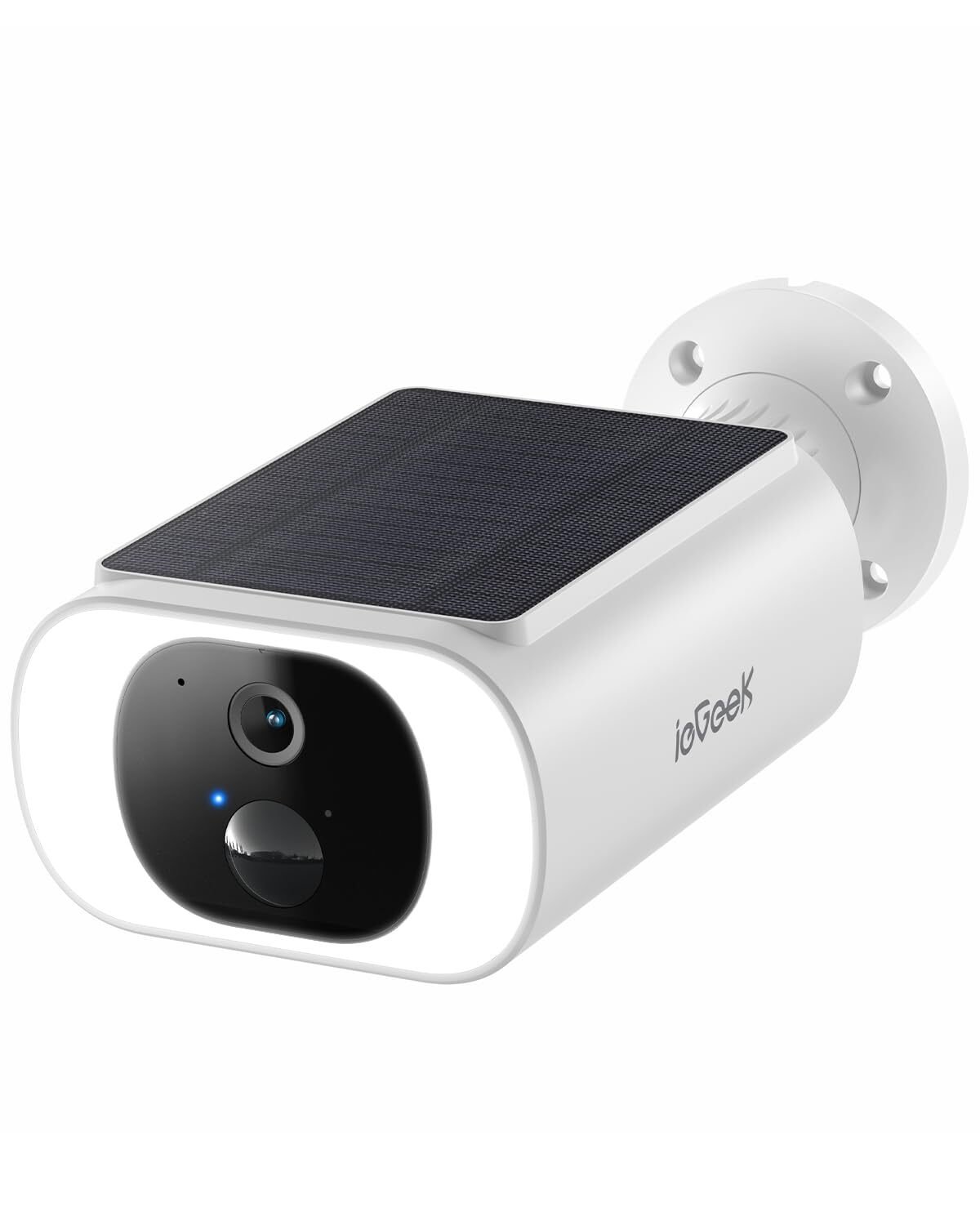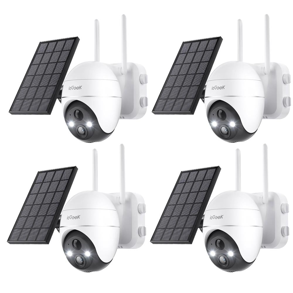 ieGeek 2K Solar caméra de surveillance extérieure batterie, 355°/140° Pan Tilt Caméra IP sans fil, vision nocturne couleur, PIR détecteur de mouvement, audio 2 voies, IP65, blanc