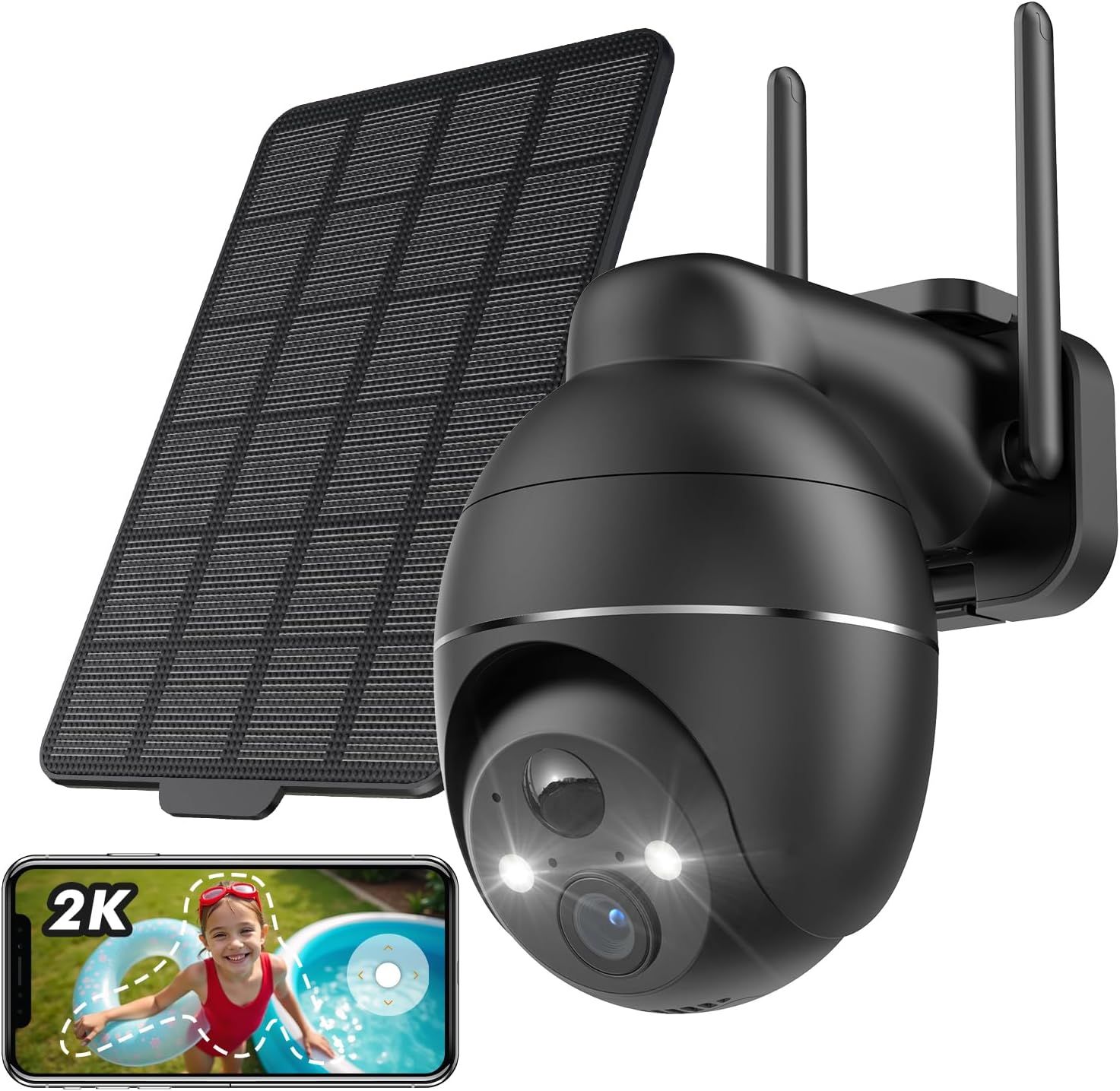 ieGeek 2K Camera Surveillance WiFi Exterieure sans Fil, Camera Solaire avec Batterie, Pan 355°/Tilt 120°, Détection Humaine PIR, Alarme Auditive, Vision Nocturne Couleur, Audio Bidirectionnel