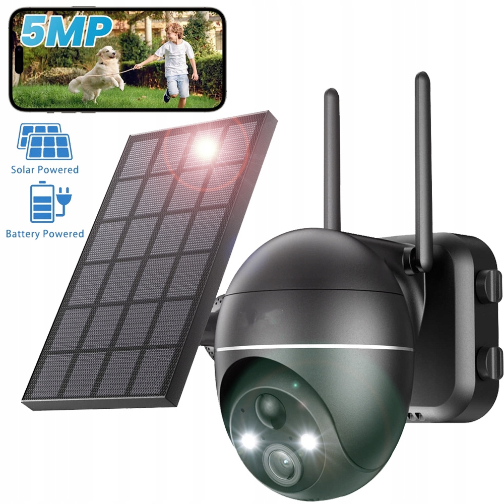 5MP caméra de surveillance extérieure batterie solaire 2K PTZ caméra sans fil surveillance extérieure avec panneau solaire PIR détecteur de mouvement, 2,4GHz WiFi avec carte TF 32G