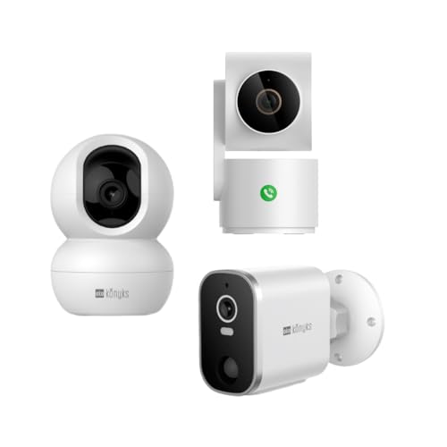 Pack caméras, 1 Caméra extérieure sur Batterie + 1 Caméra Wi-FI intérieure Wi-FI PTZ +1 Caméra intérieure avec Bouton d’Appel vidéo