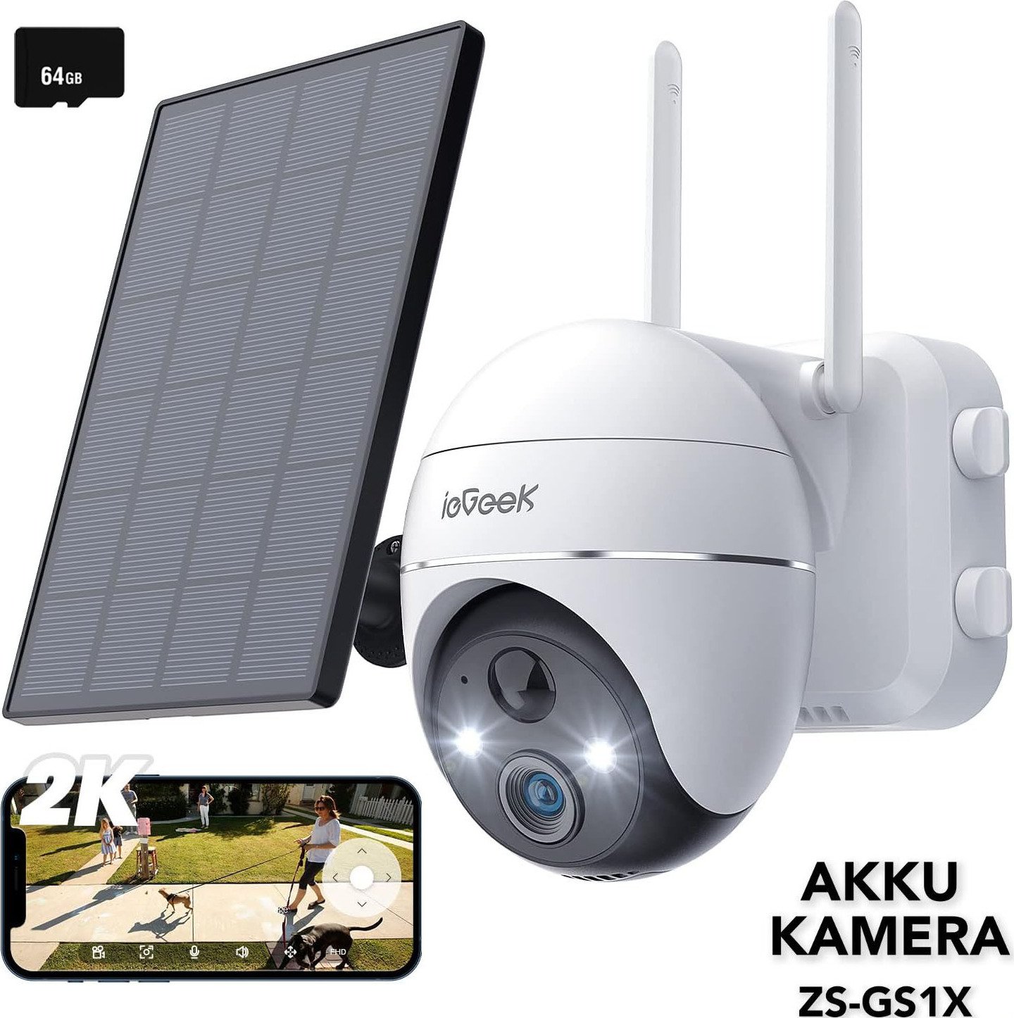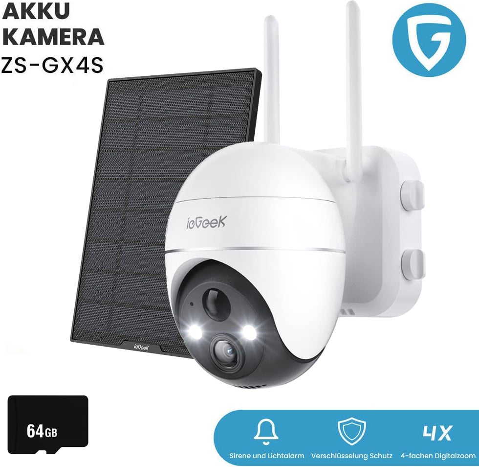 ieGeek Caméra de surveillance 2K, Caméra de surveillance extérieure Batterie avec carte SD 64GB, Caméra de surveillance extérieure Wlan