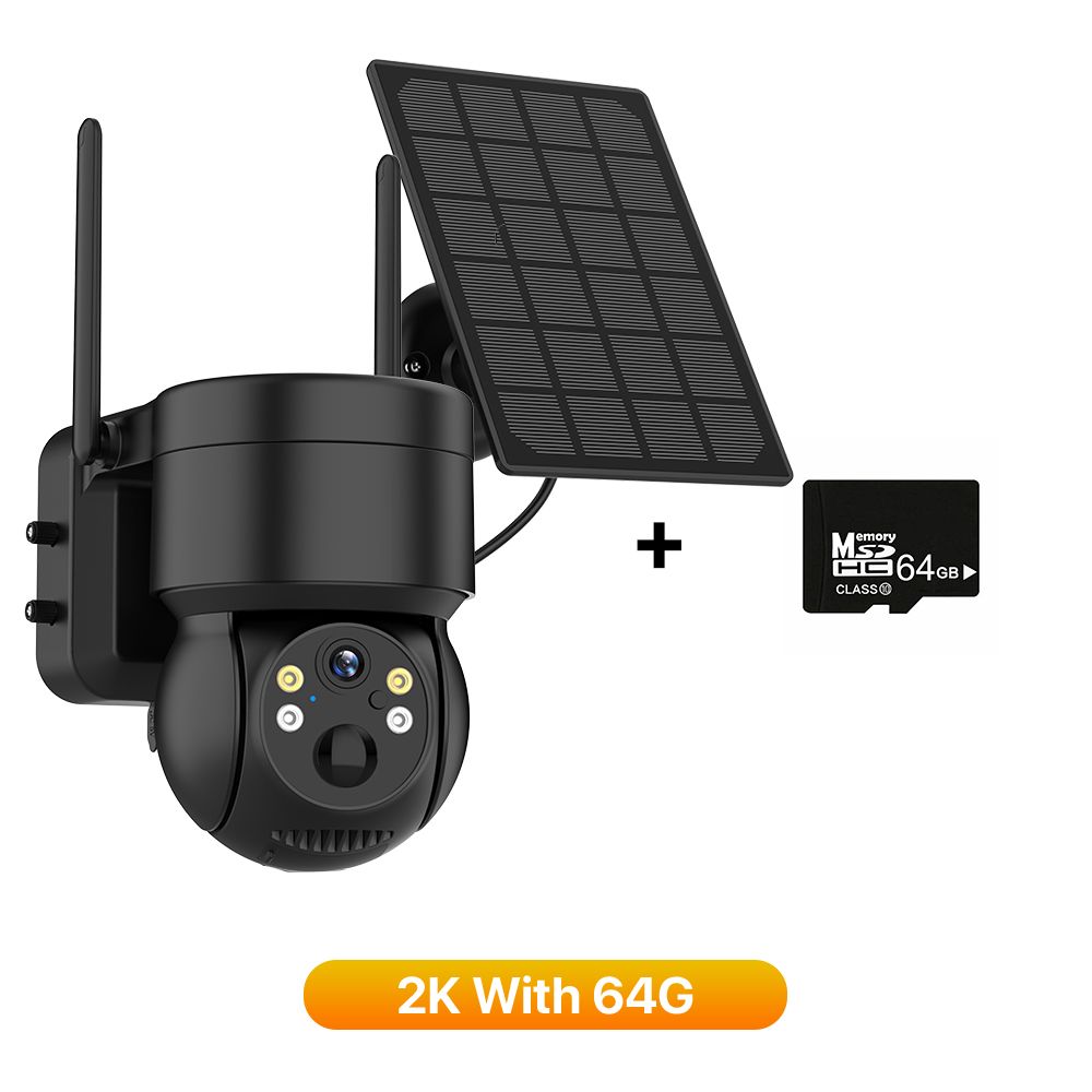 Caméra de vidéosurveillance solaire sans fil,caméra de sécurité extérieure,batterie intégrée,objectif pour touristes,panneau solaire,vidéosurveillance,iCSee,Wi-Fi,4K HD,2K - Type 2K With 64G