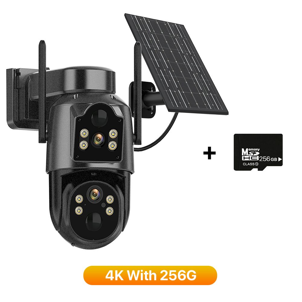 Caméra de vidéosurveillance solaire sans fil,caméra de sécurité extérieure,batterie intégrée,objectif pour touristes,panneau solaire,vidéosurveillance,iCSee,Wi-Fi,4K HD,2K - Type 4K With 256G