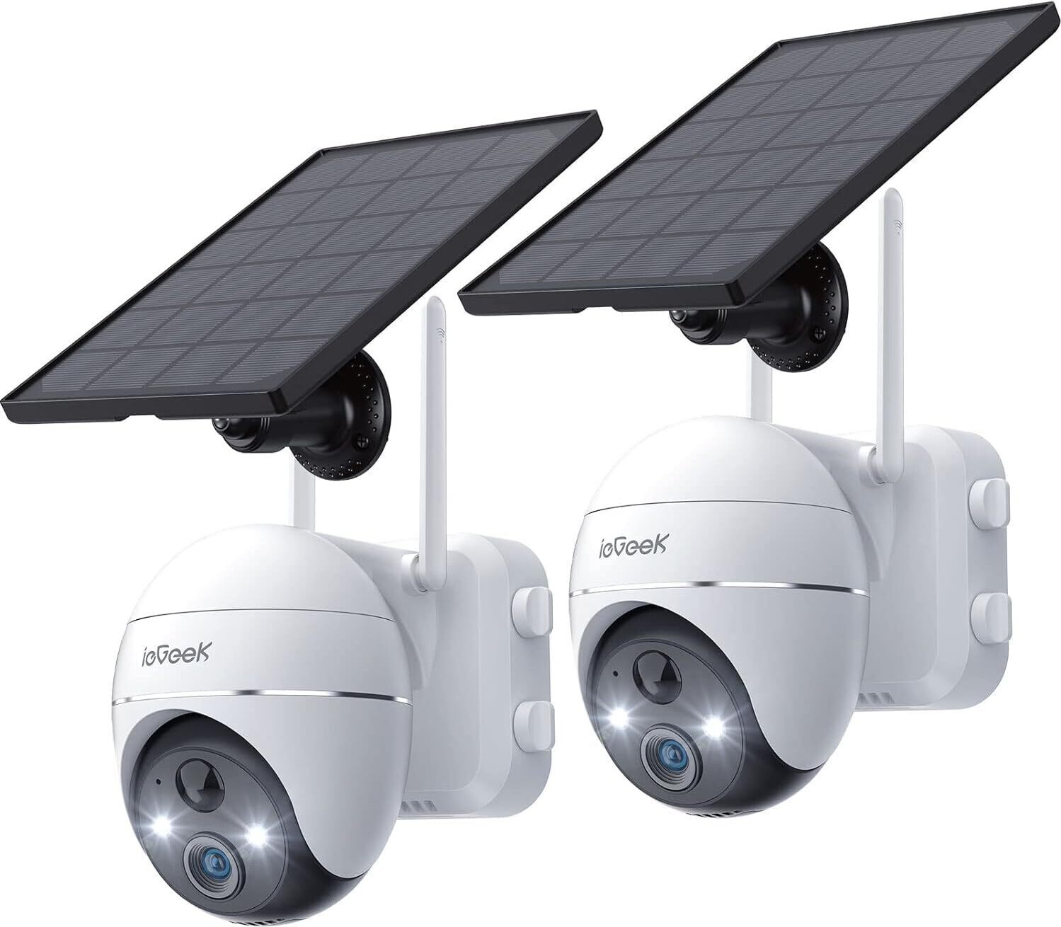ieGeek Solar caméra de surveillance extérieure batterie WLAN avec panneau solaire Outdoor 3MP UHD vision nocturne couleur, suivi automatique, audio 2 voies ( 2 pcs)