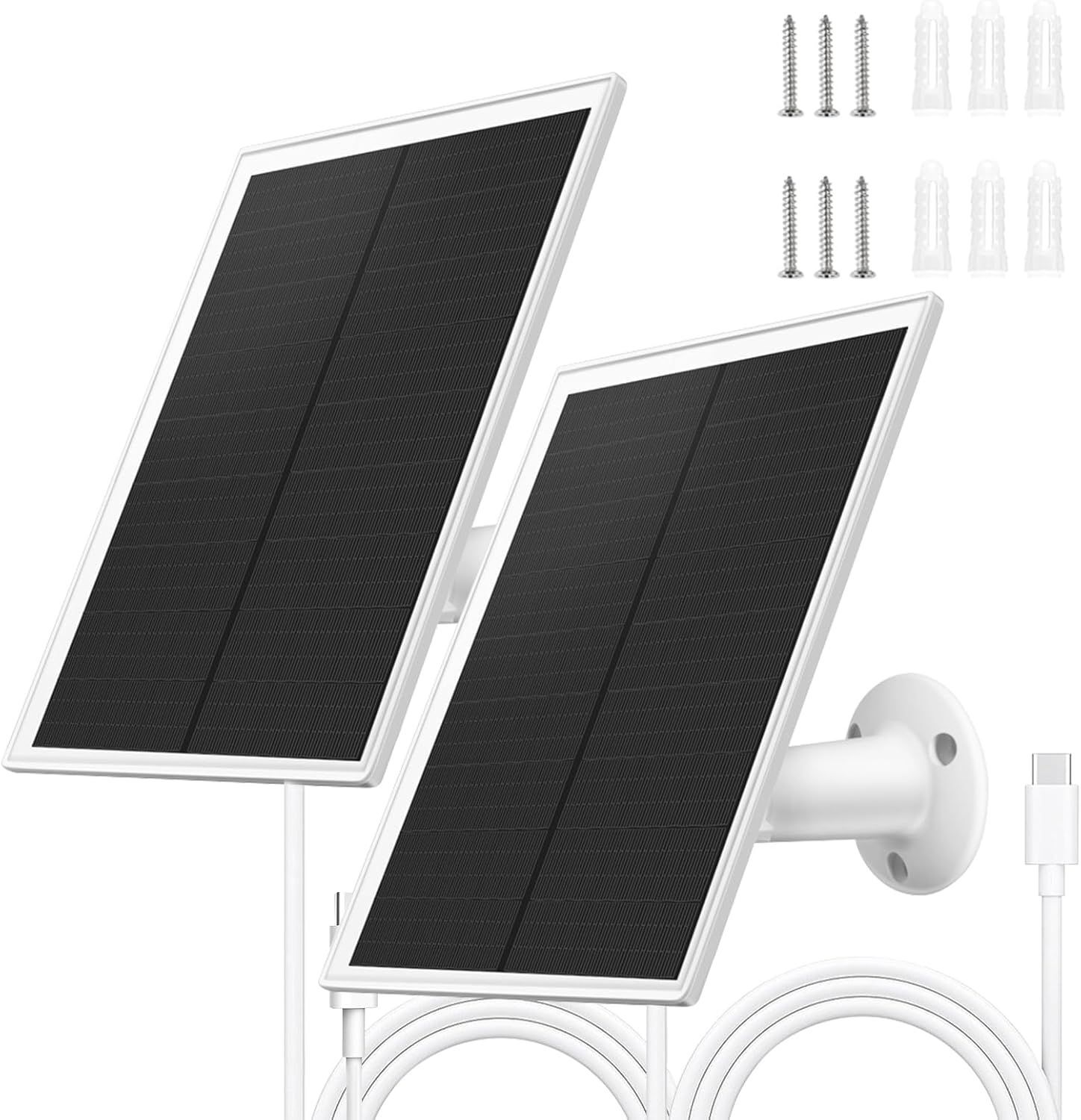 HUEJ-Panneau Solaire Usb 5W Pour Sonnette Ring Doorbell,Pour Caméra Extérieure À Batterie Rechargeable,Compatible Avec La Sonnette Vidéo Ring Battery,Étanche,Support De Sécurité,Câble10Ft (Blanc