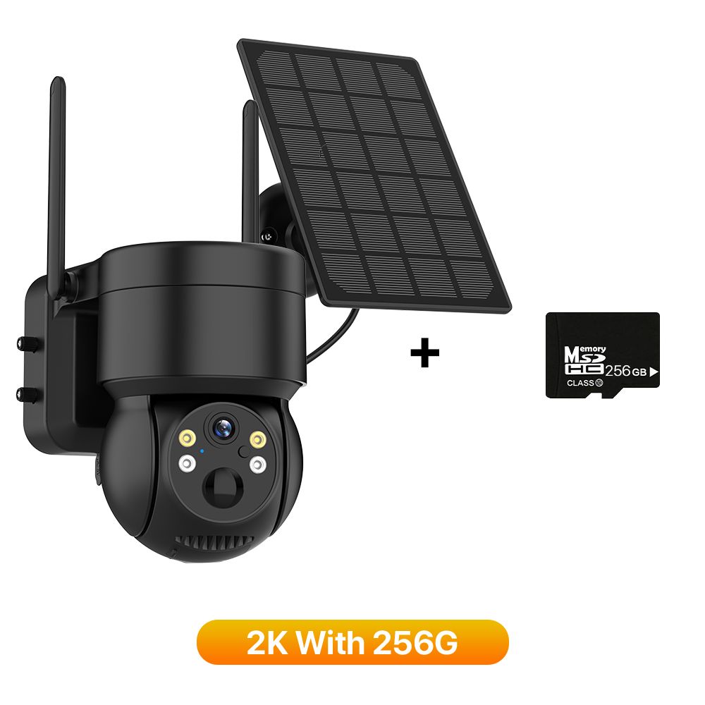 Caméra de vidéosurveillance solaire sans fil,caméra de sécurité extérieure,batterie intégrée,objectif pour touristes,panneau solaire,vidéosurveillance,iCSee,Wi-Fi,4K HD,2K - Type 2K With 256G