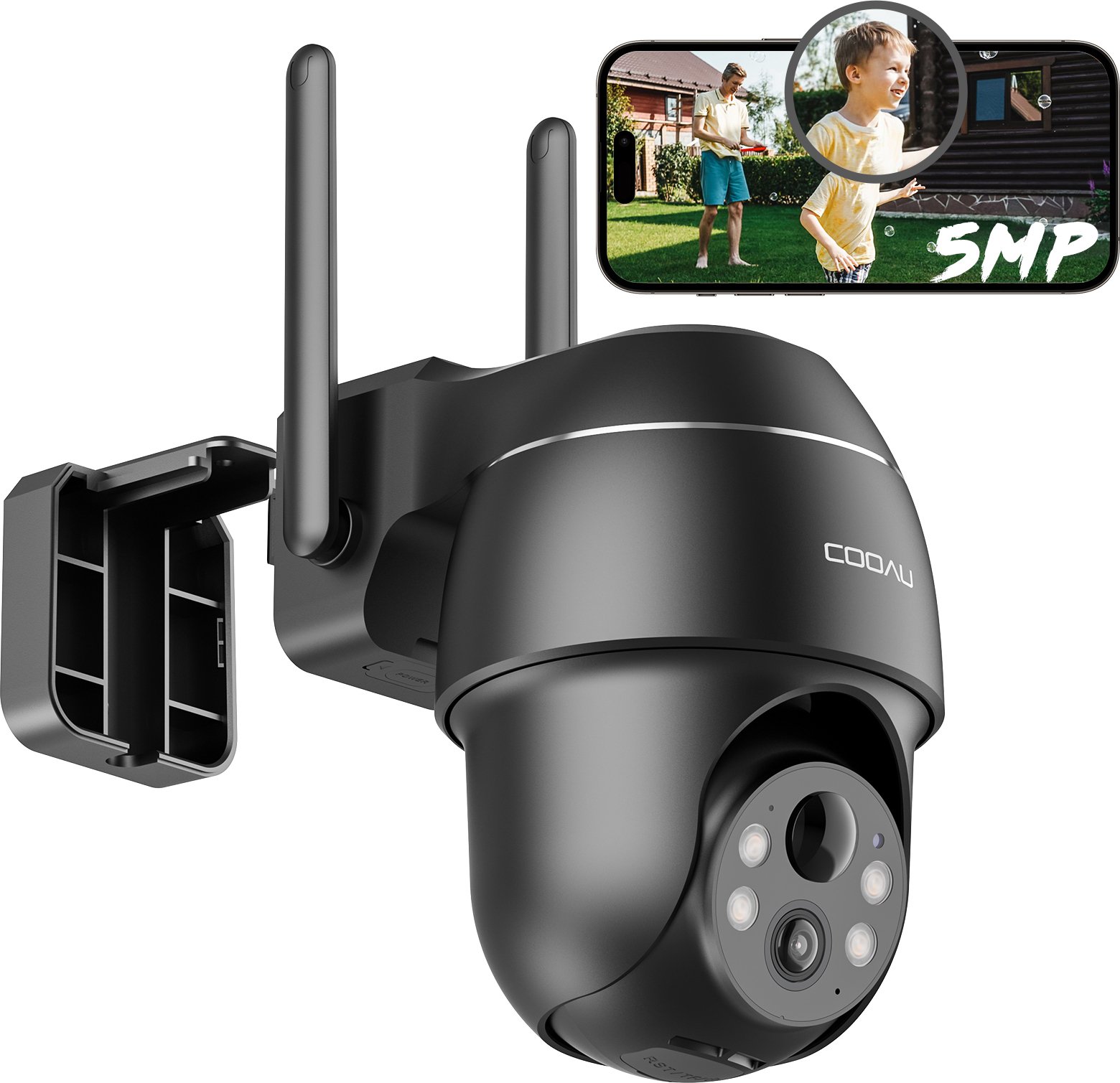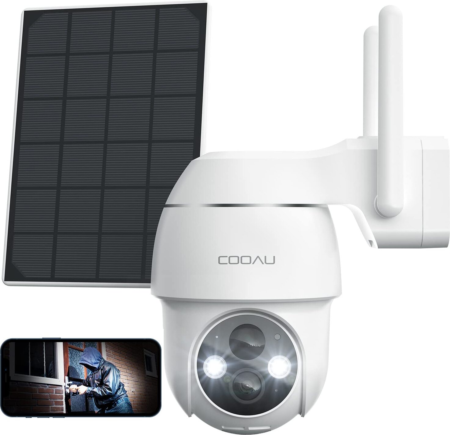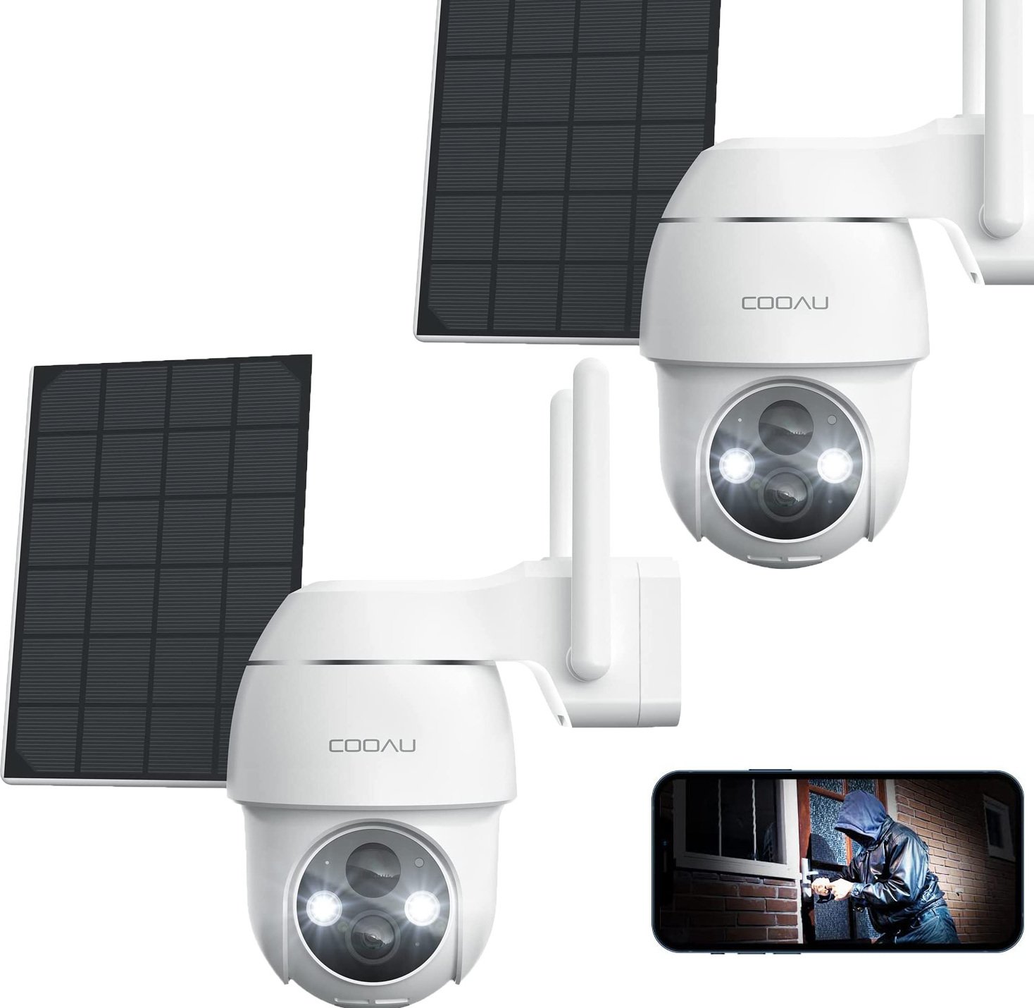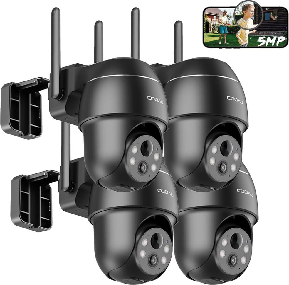 COOAU 2K Solar caméra de surveillance extérieure batterie avec PTZ, PIR détecteur de mouvement, Alexa