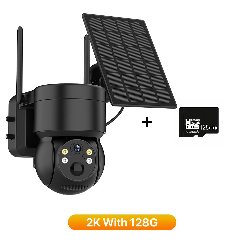 Caméra de vidéosurveillance solaire sans fil,caméra de sécurité extérieure,batterie intégrée,objectif pour touristes,panneau solaire,vidéosurveillance,iCSee,Wi-Fi,4K HD,2K - Type 2K With 128G