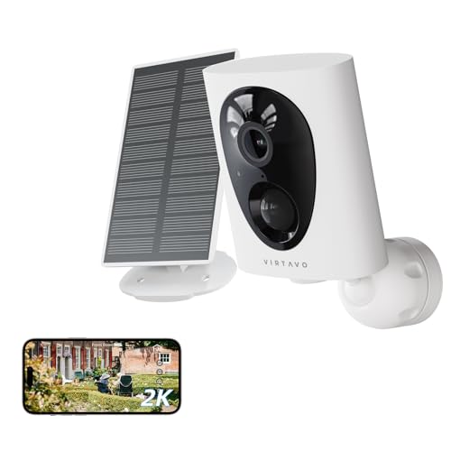 virtavo 2K Camera Surveillance WiFi Exterieure sans Fil, Batterie et Panneau Solaire Intégrés, Vision Nocturne Couleur Starlight, Détection PIR, Audio Bidirectionnel, SF1