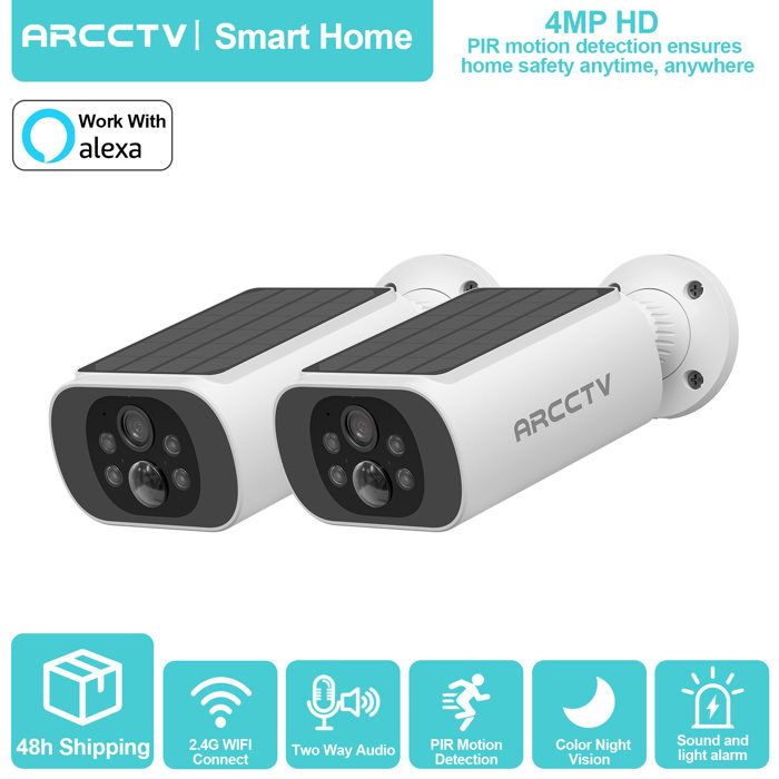 Caméra de Surveillance Sans Fil Exterieure 4MP Camera batterie avec Panneau solaire intégré-ARCCTV-WIFI 5ghz et 2.4Ghz-2PCS