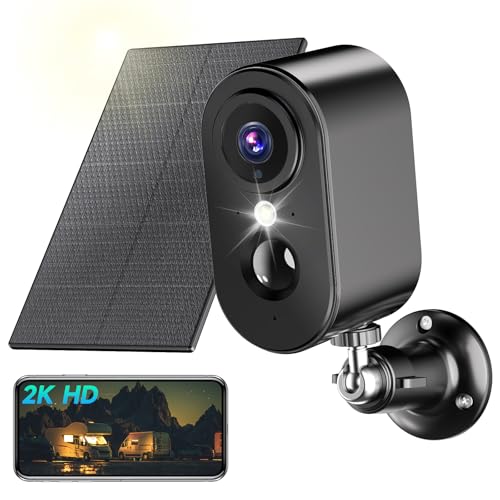 IHOXTX 2K Camera Surveillance WiFi , Camera Surveillance WiFi Exterieure sans Fil avec Panneau Solaire, Vision Nocturne Couleur, Détection Humaine, Toute L'année de Protection