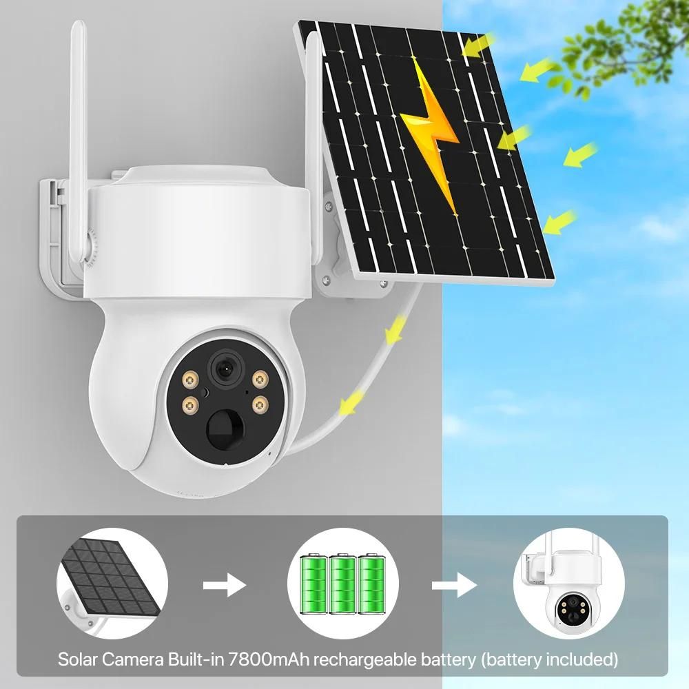 Caméra solaire extérieure sans fil batterie intégrée 4MP HD WiFi PTZ caméra PIR détection humaine caméra de Surveillance vidéo iCsee APP