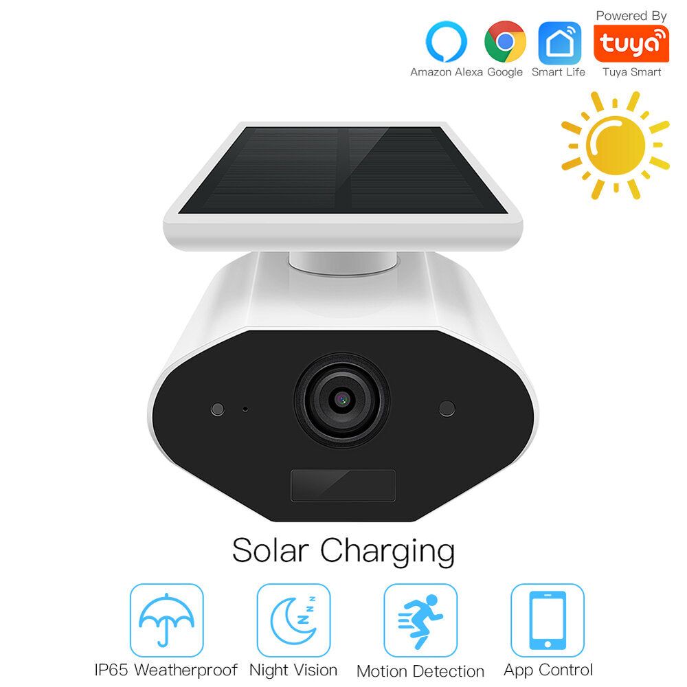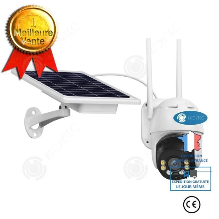 Caméra extérieure solaire de surveillance, WIFI sans fil avec 3MP full HD, Vision Nocturne 360 °, Détection de Mouvement avec une prise en charge de l' APP Alexa + Carte micro TF 128 GB