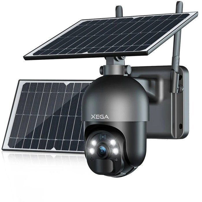 Xega Caméra de Surveillance Extérieure Solaire 3G/4G LTE avec 2 Panneaux Solaires Détection de Mouvement Vision Nocturne 2K