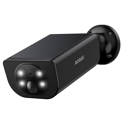 AOQEE Camera Exterieure sans Fil Solaire- 2K Camera Surveillance WiFi Exterieure Panneau Solaire intégré, Étanche IP65, Détection Humaine AI, 2.4GHz WiFi, Alerte Instantané PIR (Noire)