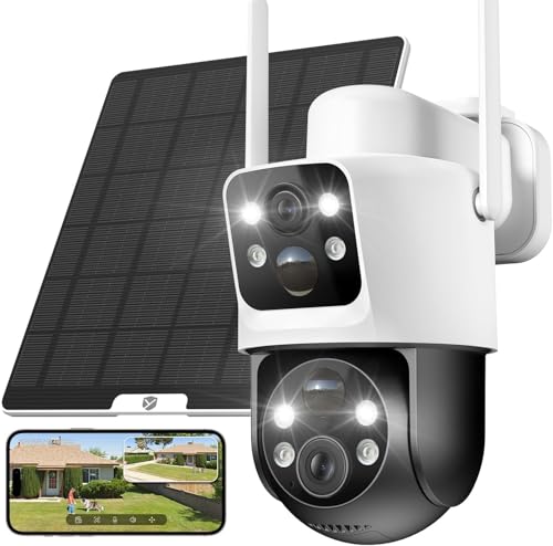 YESKANO 6MP Camera Extérieure Solaire sans Fil, avec Double Objectif et 360° PTZ, 2,4 GHz Wi-FI et 6W Panneau Solaire, Vision Nocturne Couleur, Détection PIR, Audio Bidirectionnel