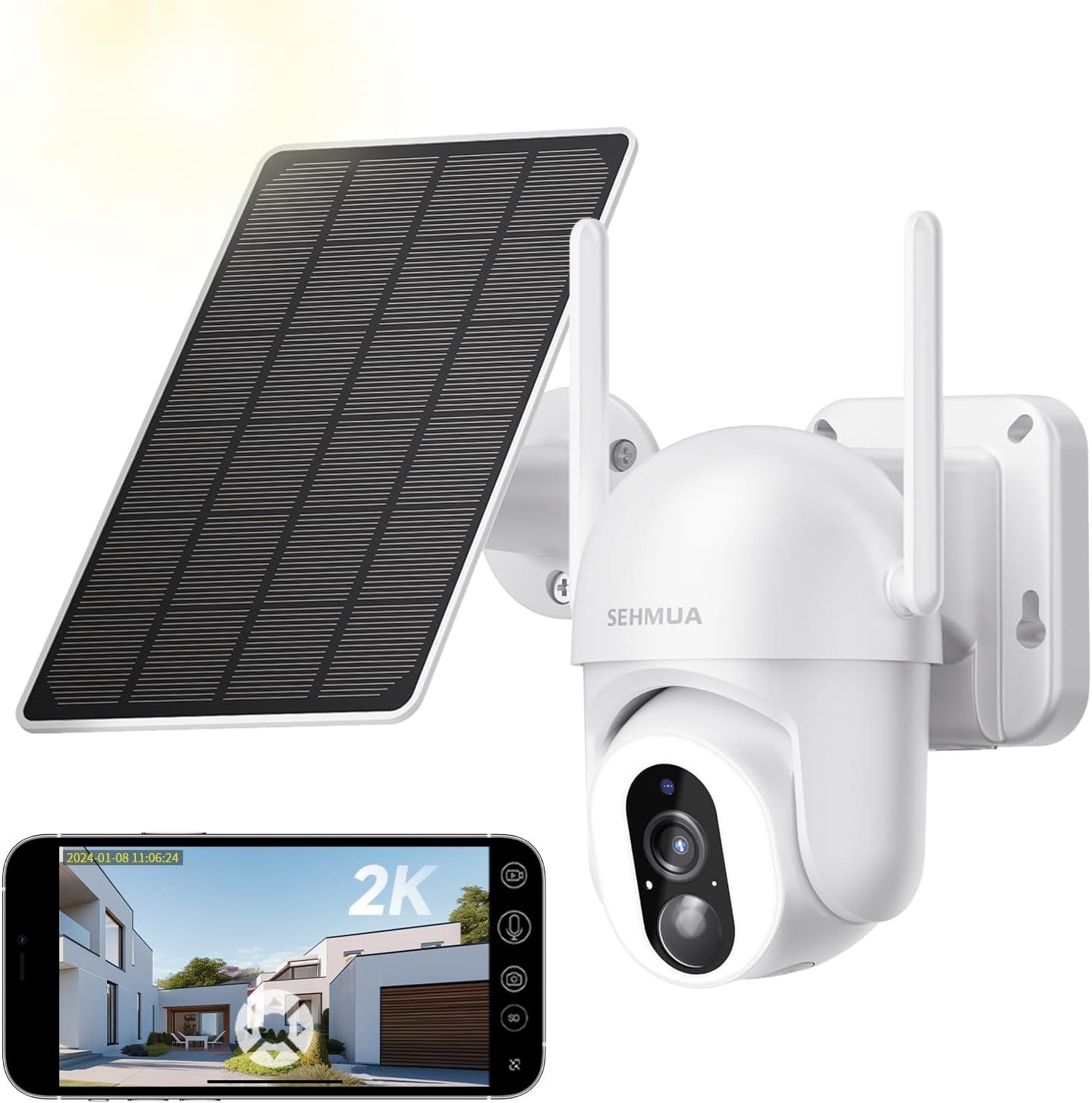 SCS Sentinel - Caméra de Surveillance Extérieure Solaire SolarCam - Image 2K HD - Détection Humaine IA - Vision Nocturne Couleur - Panneau Solaire 5W - Contrôle Via Application iSCS