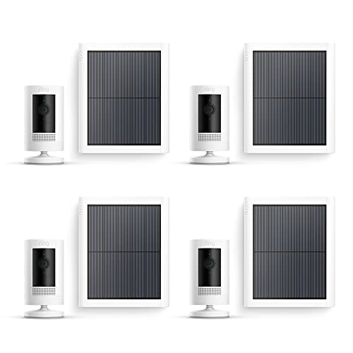 Ring Caméra extérieure solaire (Stick Up Cam) | Caméra de surveillance extérieure wifi HD, panneau solaire, audio bidirectionnel, fonctionne avec Alexa | Essai Ring Home gratuit 30 j. | 4 Caméras
