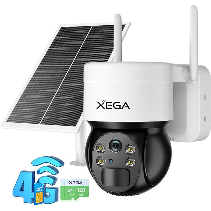2K Caméra Surveillance Solaire Extérieure Xega 3G-4G LTE sans Fil avec 6W Panneau Solaire 10000mAh Batterie Vision Nocturne