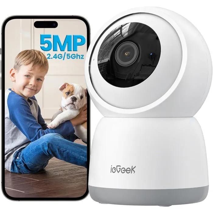 ieGeek 5MP Camera Surveillance WiFi Interieur 2.4G/5GHz PTZ360° PIR Alexa Bébés