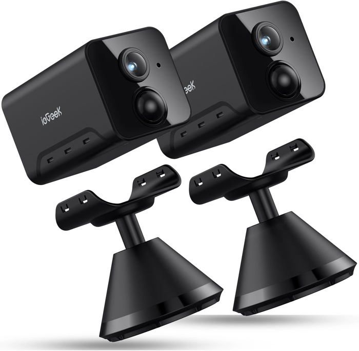 ieGeek 2K Rotation à 180° Camera Exterieur sans Fil Batterie, Vision Nocturne Couleur, Audio Bidirectionnel, Détection de Mouvement AI et PIR, Alexa, Local/Cloud, IP65, S3, Noir, 2pcs