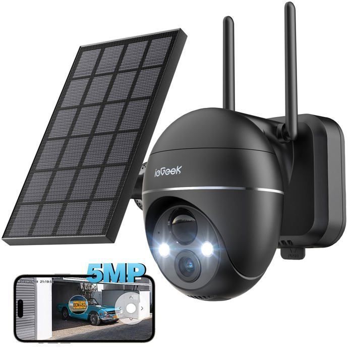ieGeek Caméra de Surveillance Extérieure 5MP 3K WiFi Solaire - 360 PTZ, Détection Humaine PIR, Vision Nocturne Couleur, Audio¿.