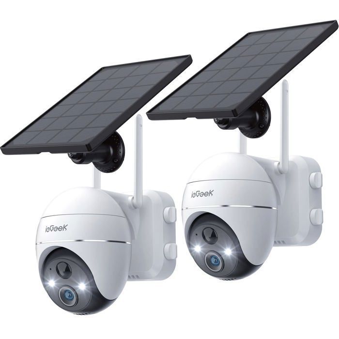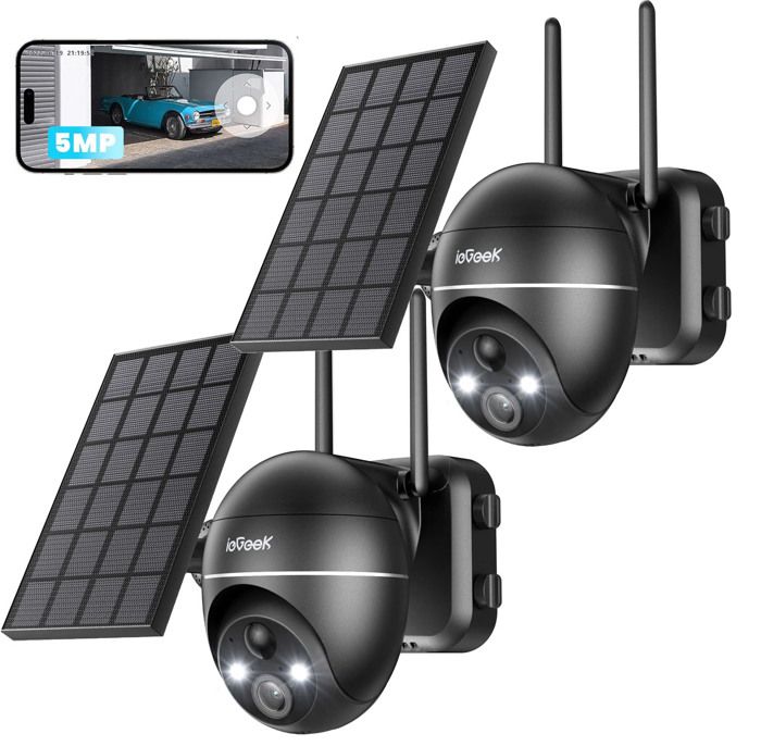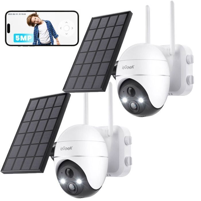 2pcs ieGeek 5MP Camera Surveillance WiFi Exterieure sans Fil Solaire 15m Vision Nocturne Couleur Detection PIR & Sirène Alarme